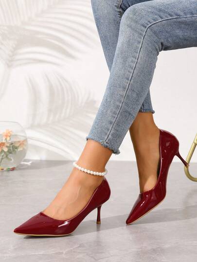 Tacones de aguja de punta fina de mujer, zapatos de moda clásicos y versátiles - Burdeos - Añade 1