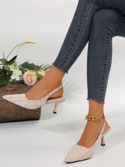 Zapatos de tacón alto de mujeres con patrón de cuadros con de punta con de color metálico pirámide tacón detalle - Albaricoque - Añade 1