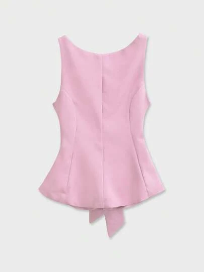 Top sin mangas con lazo decorativo y dobladillo de falda, estilo francés romántico/vacacional, para primavera/verano o primavera/otoño - Rosa - Añade 1