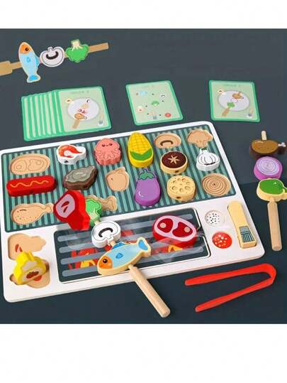 Juego de barbacoa de madera - Cocina interactiva, con juguetes de comida realista, accesorio de cocina seguro - Multicolor - Añade 1
