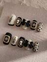 10 piezas de uñas postizas hechas a mano, uñas postizas de almendra largas, arte de uñas gótico, uñas falsas, arte de uñas de estilo oscuro con degradado gris frío, metal hueco, mariposa, destello de metal, estrella y luna, cristal, uñas negras, adecuadas para que las usen chicas y señoras en bodas, escenarios, bailes, fiestas, escenas festivas, arte de uñas personalizado, con un kit de uñas