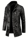 Chaqueta de motocicleta de cuero de PU con estampado de letras para hombres, cortavientos casual para deportes al aire libre, otoño e invierno, forro polar