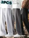 2 piezas Pantalones sueltos y casuales para hombre, de unicolor, con cordón en la cintura, aptos para primavera/verano, cómodos para deportes al aire libre, trotar, fitness, correr, baloncesto