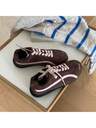 XIXITIAO 1 par de pantuflas retro de bloques de color y rayas, pantuflas cómodas para interiores de pareja con suela suave antideslizante, cálidas para otoño/invierno