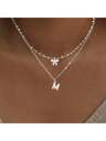 1 pieza Colgante de Iniciales clásico de acero inoxidable dorado con collar de cadena en capas para mujeres