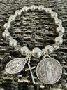 1 pieza Pulsera con colgante de Virgen María con flor y cruz de perlas falsas, estilo vintage adecuado para uso diario de hombres y mujeres, regalo de joyería