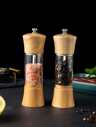 Molinillo de pimienta de estilo nórdico de 7 pulgadas, manual, con rayas, botella de granos de pimienta negra, molino de especias de madera para sal marina y polvo de chile
