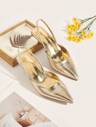 Sandalias de tacón de gatito con decoración de lazo de strass para mujer, puntiagudas y huecas, de slip-on, elegantes y de moda para fiestas y eventos formales con tacón bajo (corte aleatorio)