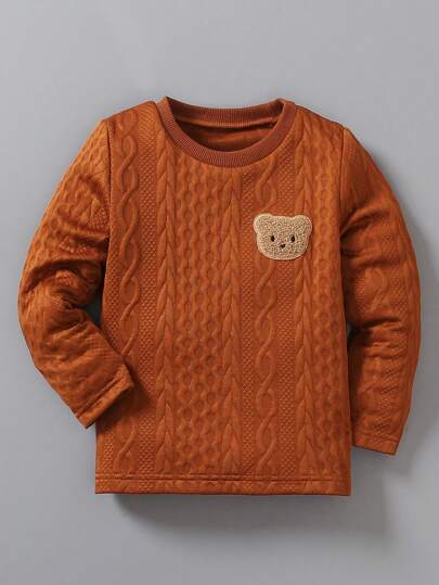 Chico joven Camiseta con bordado de oso tejido de cable - Café integral - Añade 3