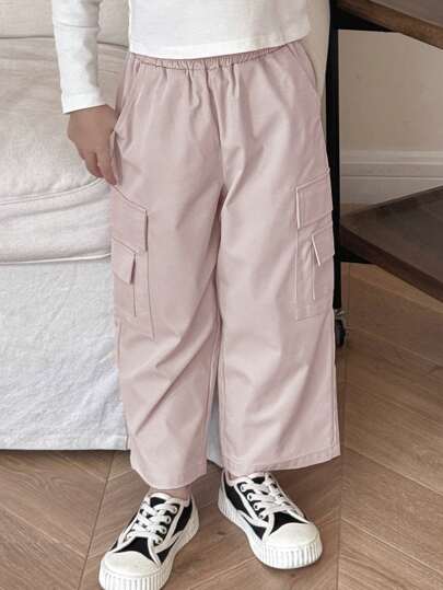 DAZY Pantalones tipo cargo de unicolor versátiles y sencillos para niñas - Rosa - Añade 2