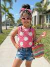Camiseta de punto floral de ganchillo ajustada para niña, color rosa, de moda para vacaciones