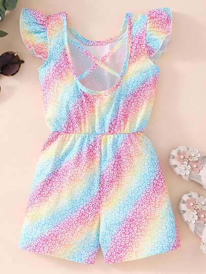 Mono de mangas cortas con escote cruzado y estampado de leopardo de colores para niñas jóvenes - Azul - Añade 4