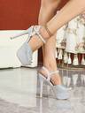 Sandalias de plataforma con punta abierta y tacón súper alto de 14 cm/5.5 pulgadas con brillo