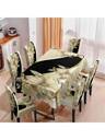 Juego de 1/4/5/6/7 piezas de funda para silla y mantel, juego de 5 piezas / 7 piezas (1 mantel + 4 fundas para silla o 1 mantel + 6 fundas para silla) con patrón de flores de gema de plata de alta calidad, adecuado para la decoración diaria moderna en interiores, hogar, restaurante, hotel. El mantel es adecuado para mesas cuadradas, y las fundas elásticas para sillas se pueden lavar.