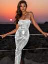Vestido elegante de mujer con destellos de rhinestones, espalda descubierta, escote halter, ideal para graduación, fiesta de cumpleaños, verano, festival y baile de graduación