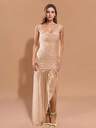 Vestido largo de mujer de unicolor con malla, con cristales de estrás brillantes, dividido, para fiestas, bodas, eventos formales y de noche, elegante