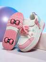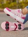 Zapatos para adolescentes 2025, calzado casual unisex con suela gruesa de TPR, parte superior con bloques de color, cierre de y letras, con ruedas duales desmontables, zapatillas con patines de ruedas de moda para adolescentes