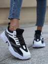 1 par de zapatos nuevos para niños, transformables y desmontables con 4 ruedas, de cordones en blanco y negro, puntera redonda y parte superior bicolor, zapatos de patines de ruedas versátiles para uso en interiores y exteriores, para todas las estaciones