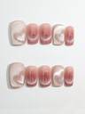 10 piezas de uñas postizas cortas de estilo ovalado en color rosa pálido, hechas a mano de forma artesanal. Diseño suave y elegante con degradado rosa, líneas doradas pintadas a mano, decoración con lámina de oro, uñas postizas lindas y dulces para mujeres y niñas, ideales para usar en festivales de primavera, verano, otoño e invierno, fiestas y vida diaria.