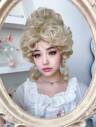 alicegarden 1 peluca sintética resistente al calor, peluca larga enrollada de color dorado con flequillo, de 24 pies de largo, hecha de fibra, apta para uso diario, peluca de simulación natural