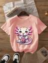 Camiseta deportiva con cuello redondo y estampado lindo para niñas. Ropa de moda cómoda y casual para otoño-invierno. Versátil, linda, suave y lavable a máquina.