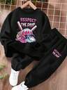 Set de 2 piezas: Sudadera con cuello redondo y estampado de moño, y pantalones, nuevo conjunto de viaje informal y de moda para niñas