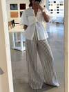 Pariaura Pantalones casuales de pierna ancha de cintura baja a rayas para vacaciones y uso diario de mujeres