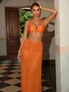 Swim Oasis Set de 3 piezas para primavera: Top tipo bandeau de unicolor, Bottom de bikini con decoración metálica y falda de malla, traje de baño elegante y sexy para mujer adulta para fiestas en la playa