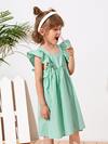 SHEIN Vestido De Lunares De Manga De Mariposa Para Niñas Pequeñas