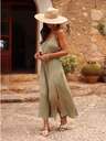 Vestido con escote en V bordado para mujer con detalles de borlas coloridas, volantes en las mangas largas, decoración con borlas para vacaciones y playa