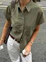 Blusa de manga larga con cuello corto estilo retro coreano, chaqueta de corte holgado para mujer