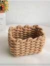 Una cesta de almacenamiento de cosméticos tejida a mano en color camello/blanco para organización de escritorio, cesta de almacenamiento tejida con cuerda, cesta de almacenamiento de escritorio, variedad de cestas de picnic tejidas, puede almacenar brochas de maquillaje, productos de cuidado de la piel, cosméticos, lápices labiales, sombras de ojos, adecuado para almacenamiento de escritorio diario