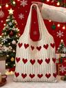 1 pieza Bolso de hombro de paja para vacaciones, bolsa de playa/picnic de trenzado de moda con decoración de flecos, bolsa tejida hecha a mano casual adecuada para regalos