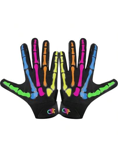 Guantes de fútbol americano para receptor abierto de Glorious Traders, para jóvenes, hombres, mujeres y niños, con palmas de silicona ultra adherente para un rendimiento óptimo - Negro - Añade 1