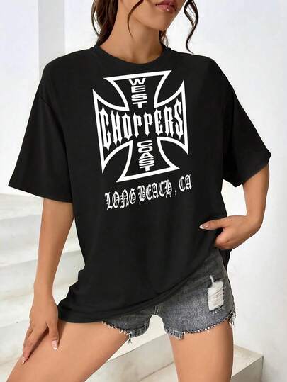 Camiseta de Motociclista Paul Walker West Coast Choppers para Mujer, California, Rápido y Furioso, Long Beach, Los Ángeles - Negro - Añade 5
