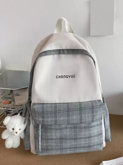 Mochila impermeable y liviana a cuadros con decoración de muñecas, mochila escolar para graduados, adolescentes, estudiantes de primer año, estudiantes de segundo año, jóvenes y mayores en la universidad, la universidad y la escuela secundaria, perfecta para actividades al aire libre, viajes y regreso a la escuela - Multicolor - Añade 5