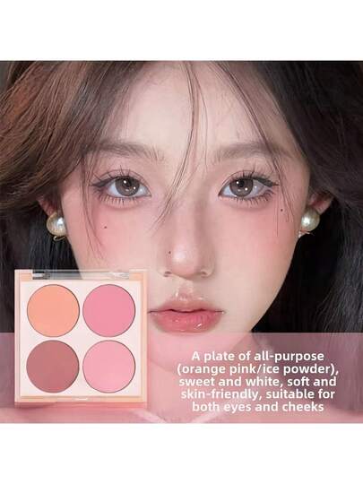 Paleta de colorete de 4 colores, paleta de maquillaje con iluminador mate color melocotón desnudo y contorno - Multicolor - Añade 3