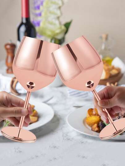 1 Pieza Copas De Vino De Acero Inoxidable - 500 Ml - Copas De Vino Lindas E Irrompibles Para Viajes, Campamentos Y Piscina - Copas De Vino De Metal Portátiles De Moda Y Exclusivas Para Actividades Al Aire Libre, Picnics - Oro rosa - Añade 2