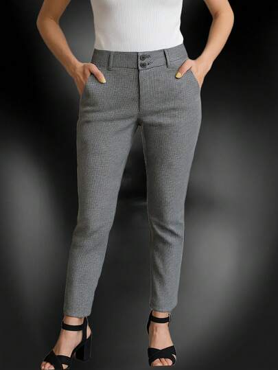 Pantalón de vestir entallado tela patron  pata de gallo - Gris - Añade 2