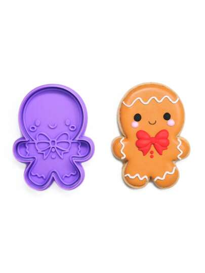 Cortador de galletas "Muñeco de jengibre" con plantilla - Morado Violeta - Añade 4