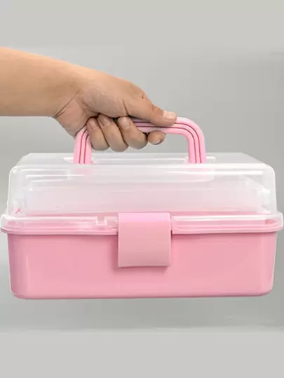 1 pieza Caja de almacenamiento de plástico de 3 capas, Caja de almacenamiento multiusos, Caja de herramientas plegable para el hogar, Caja portátil para manualidades y artesanía, Organizador de suministros de costura, Caja de medicamentos - Rosa - Añade 1