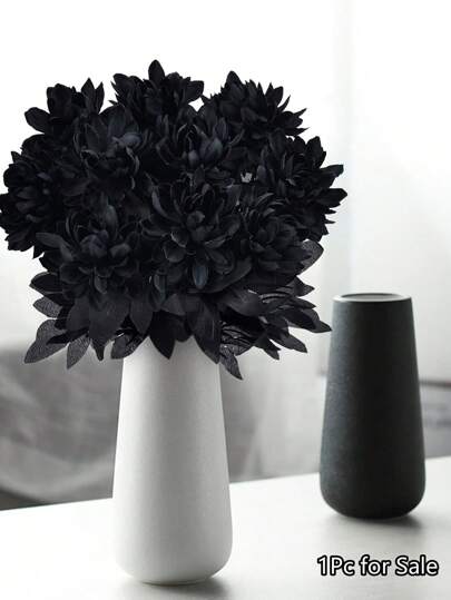 1 pieza de flores negras para decoración de Halloween, dalias negras, tallos de dalia artificiales, ramo de dalia de seda artificial, flores de tallo largo para el festival de la cosecha de Halloween, bricolaje, boda gótica, ramo de novia, centros de mesa de cosecha, decoración de fiesta victoriana para el hogar - Negro - Añade 1