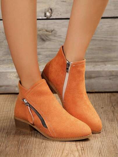 Botas planas para mujer,Botas cortas,Botines - Naranja - Añade 1