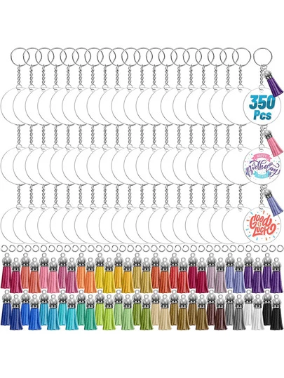 350 piezas de llaveros acrílicos transparentes en blanco para manualidades creativas, decoración de colgantes, accesorios de automóvil, encantos de bolso, escolares, lindos y góticos de Y2K - transparente - Añade 4