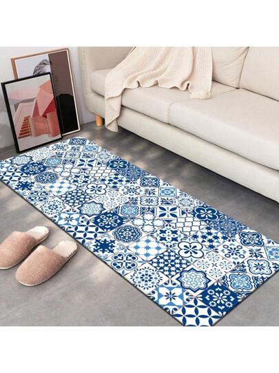 1 Pieza Azul Y Blanco Tablero De Ajedrez Estilo Marroquí Largo Antideslizante Estera Del Piso Cómoda Estera Absorbente Y Suave Para El Salón, Sofá, Habitación, Confortable Estera De Pie Para El Cuarto De Baño, Cocina, Pasillo De Entrada Decoración Del Hogar - EstiloB - Añade 5