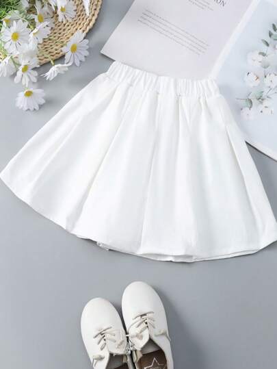 1 pieza Falda blanca simple para niñas preadolescentes en verano - Blanco - Añade 2