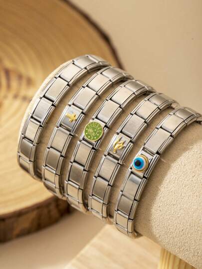1 Pieza Pulsera De Italiana De Estilo Simple Para Mujeres Para Uso Diario De Moda, Usando Una Pulsera Elastica Como Regalo De Cumpleaños Para Buenos Amigos - Plateado - Añade 5