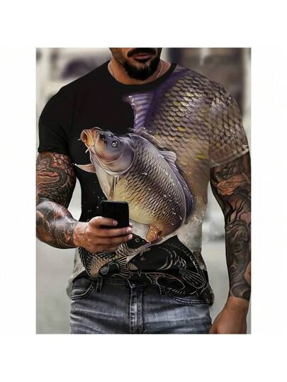 PRO THOR Camisa de pesca de manga corta con estampado de carpa, camiseta de pescador - Negro - Añade 3