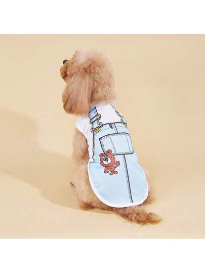 Chaleco falso con correa para mascotas perros Teddy bear, Panda y ropa de gato peleador, transpirable de malla para la primavera y verano - Celeste - Añade 1
