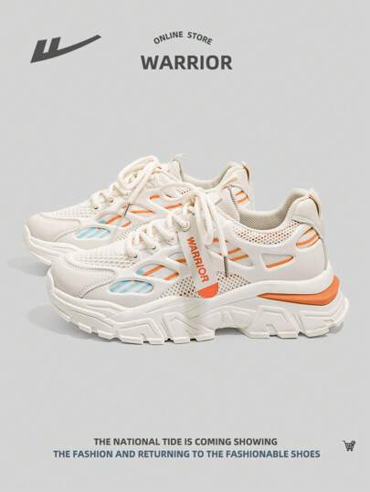 WARRIOR 1 par de zapatillas deportivas para mujer con estilo deportivo, parte superior de malla, diseño transpirable, patrón de bloques de color, cierre frontal de cordones, corte bajo y suela plana - Beis - Añade 1